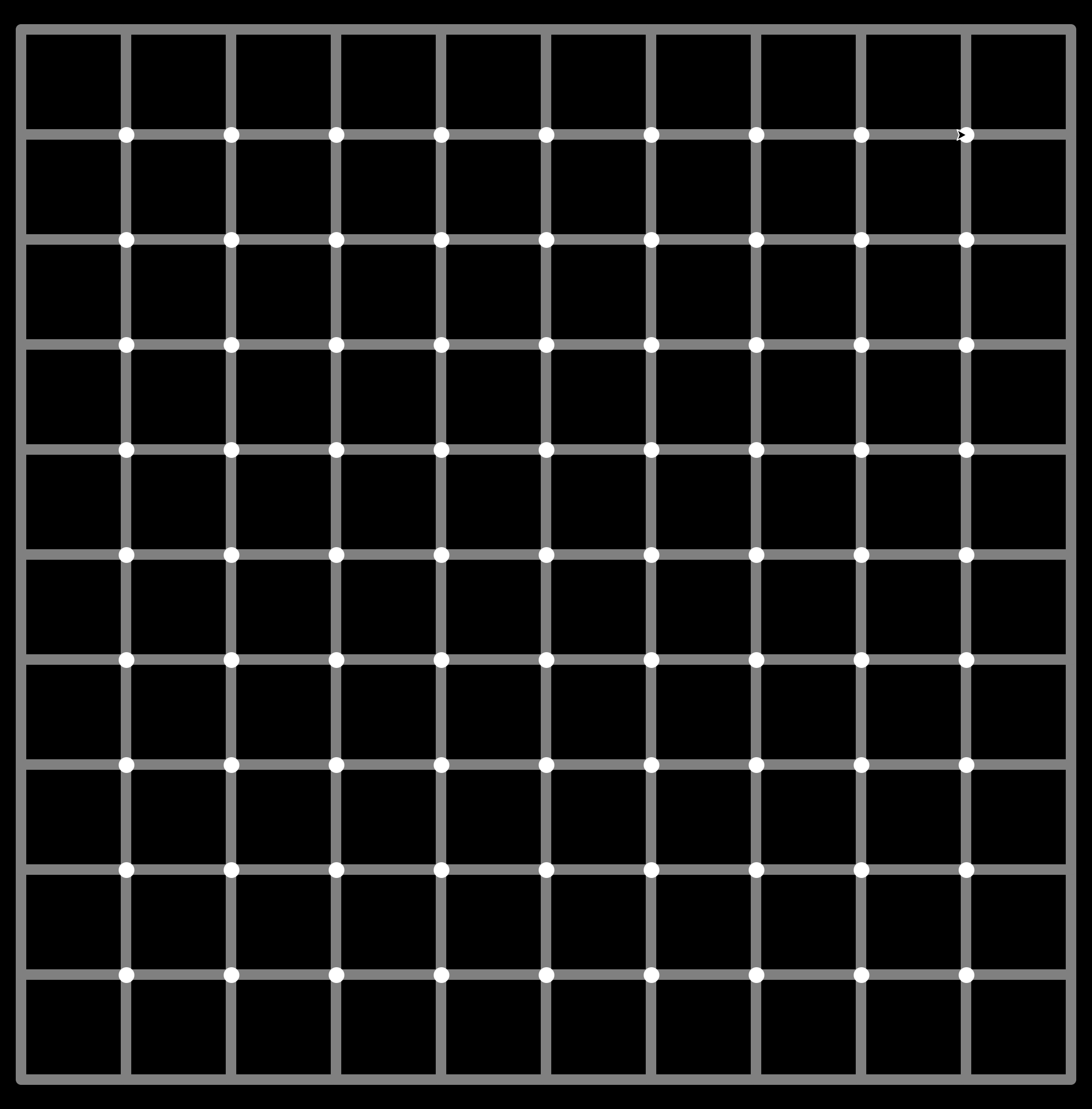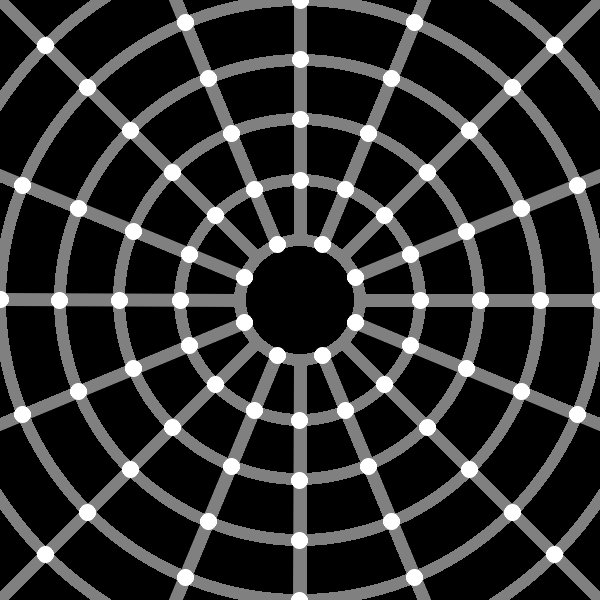 - Draw white dots with a diameter of 15 at the interior intersections