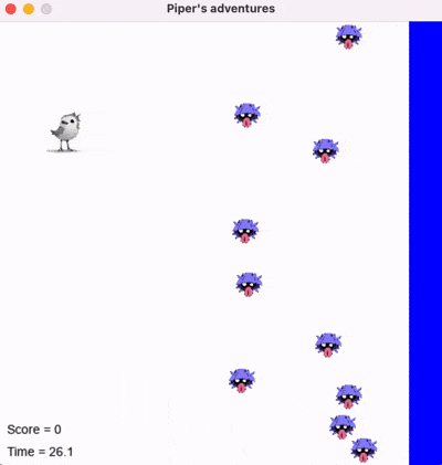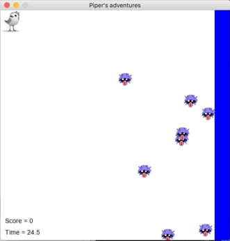 - [2 points] Make the story of the game similar to the Pixar short by having Piper “duck” when a wave comes in. Define an additional boolean