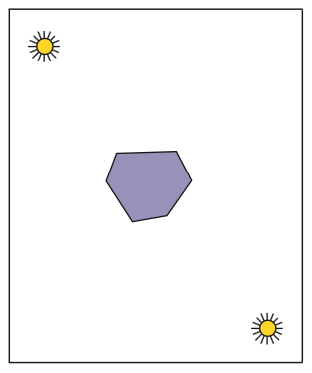 However, area light sources are much more difficult (and much more computationally intensive) to model with the direct illumination techniques we'll use. Instead we'll just focus on either point light sources or directional lights. We'll also assume that the intensity of the light is constant in our scenes (i.e. it does not depend on the distance from the light to our surfaces).