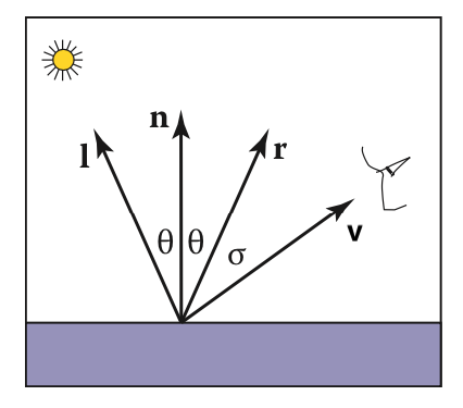 This highlight can be added to our color by using the Phong lighting model, named after a graduate student at the University of Utah back in the 1970s. Ideally we would like to see a fuzzy highlight when our view direction is directly aligned with the reflection direction