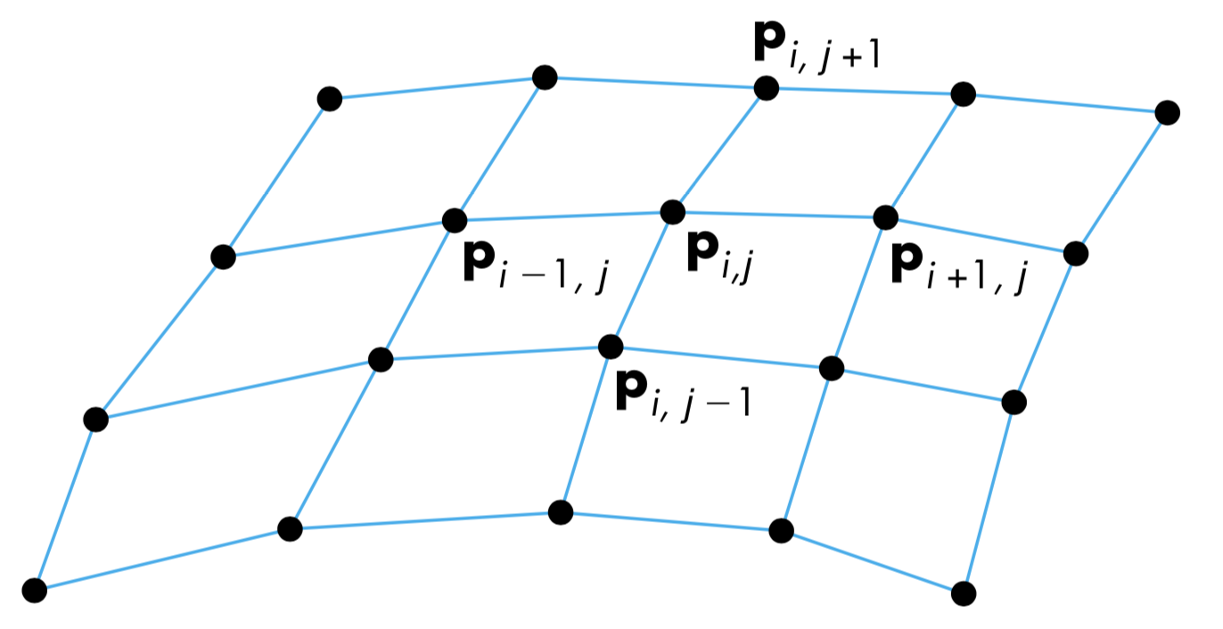 structural spring: creates a force between a vertex at $(i,j)$ and any neighboring vertices $(i \pm 1,j)$, $(i,j \pm 1)$.